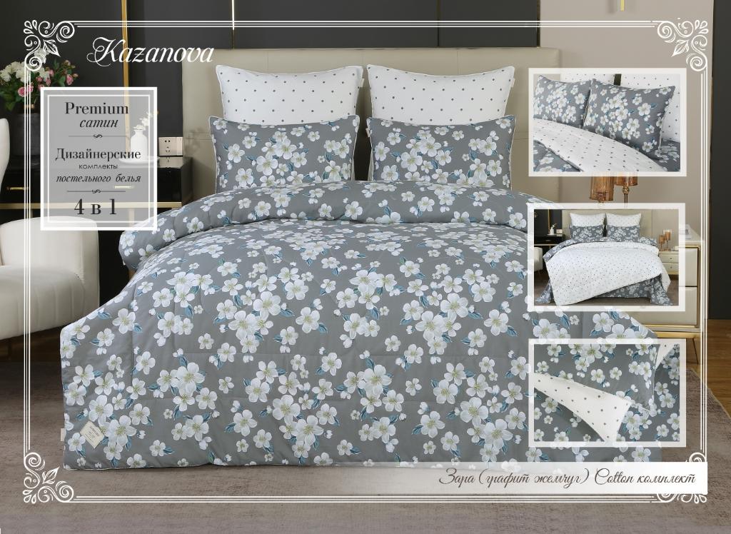 Постельное белье с одеялом "Kazanov.A." Зара (графит жемчуг) Сатин, 1,5 спальный