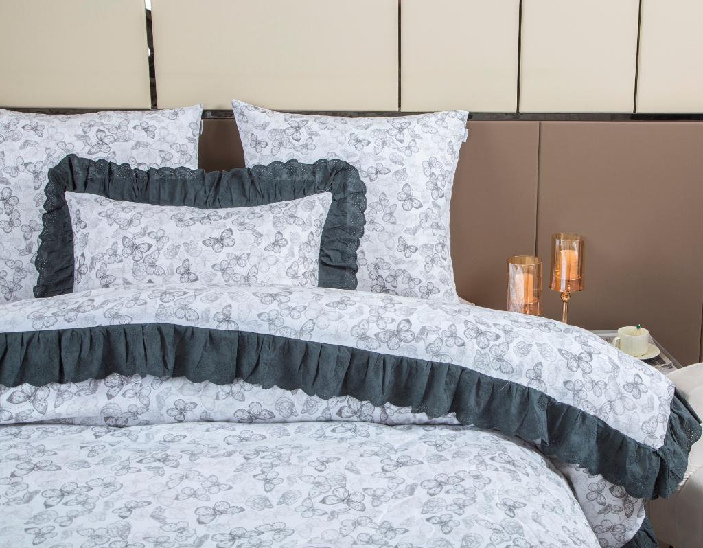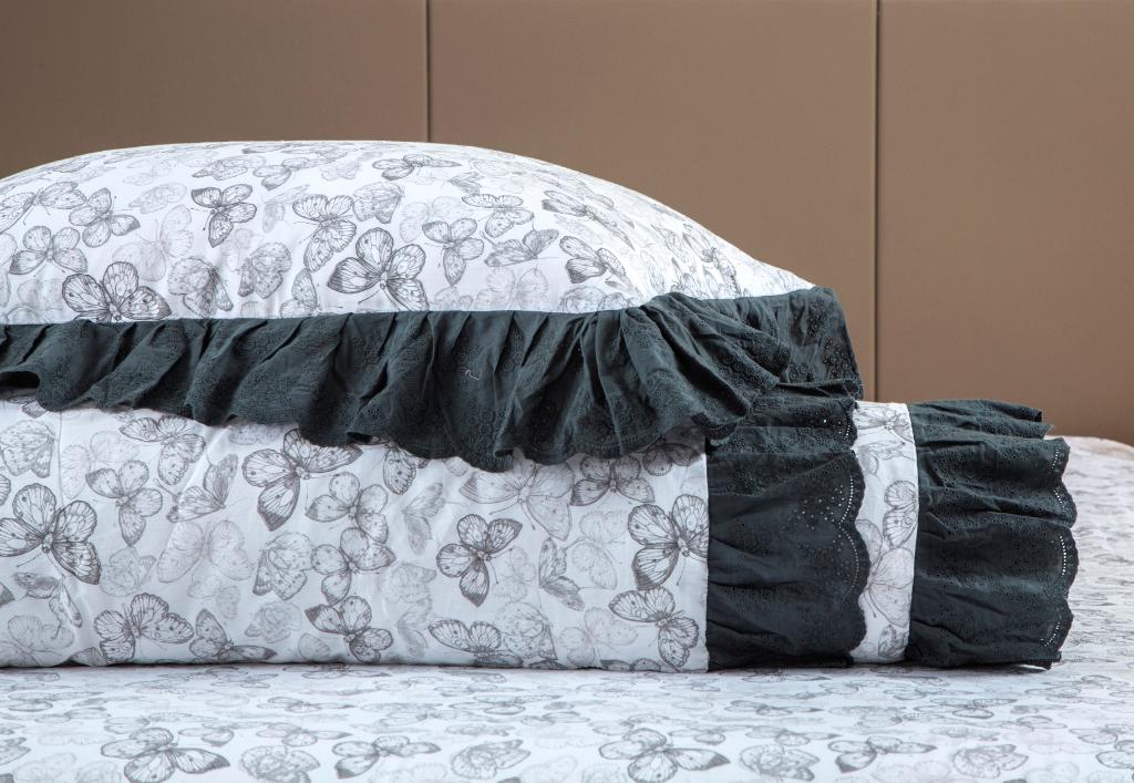 Коллекция "Corsica Village" представляет собой комбинацию постельного белья и лёгкого одеяла в чехле. В качестве наполнителя одеяла используется эковолокно-микрогель. Наволочки, простыня и чехол одеяла выполнены из сатина (100% хлопок). Изделие неприхотливо в уходе, легко стирается и быстро высыхает. Наволочки и чехол одеяла декорированы воланами из утончённого батиста.