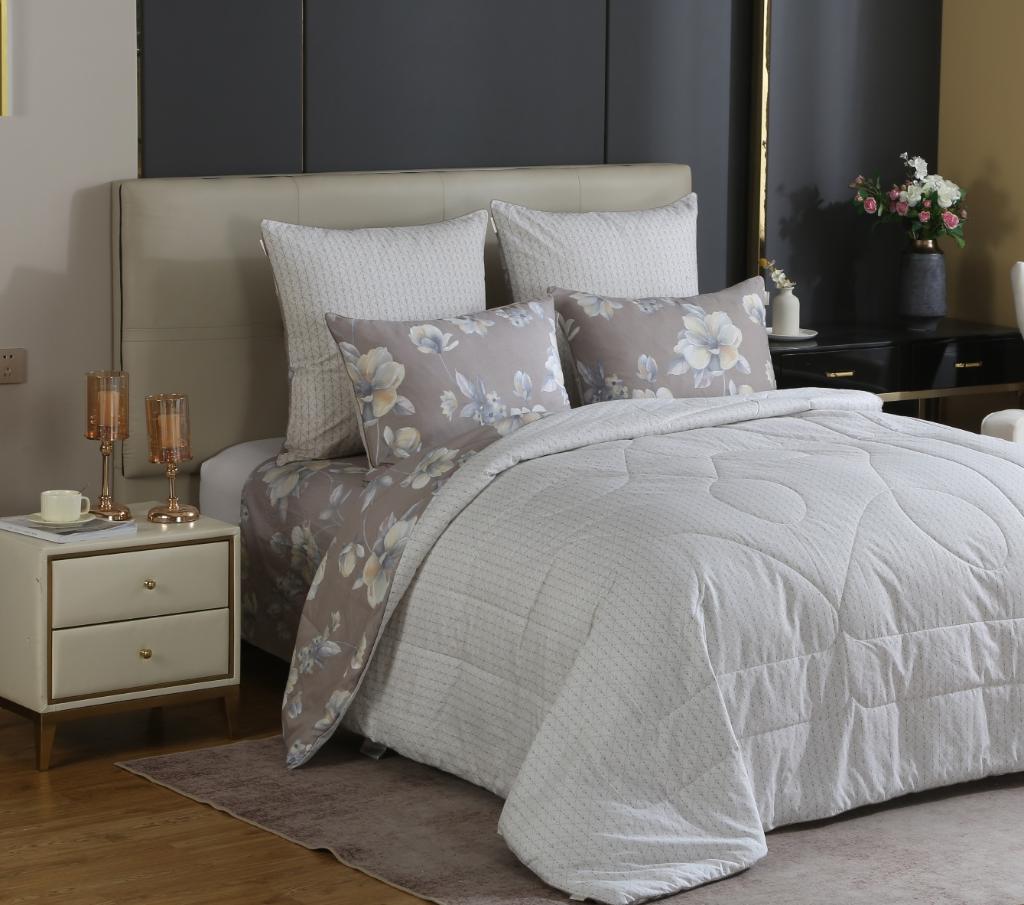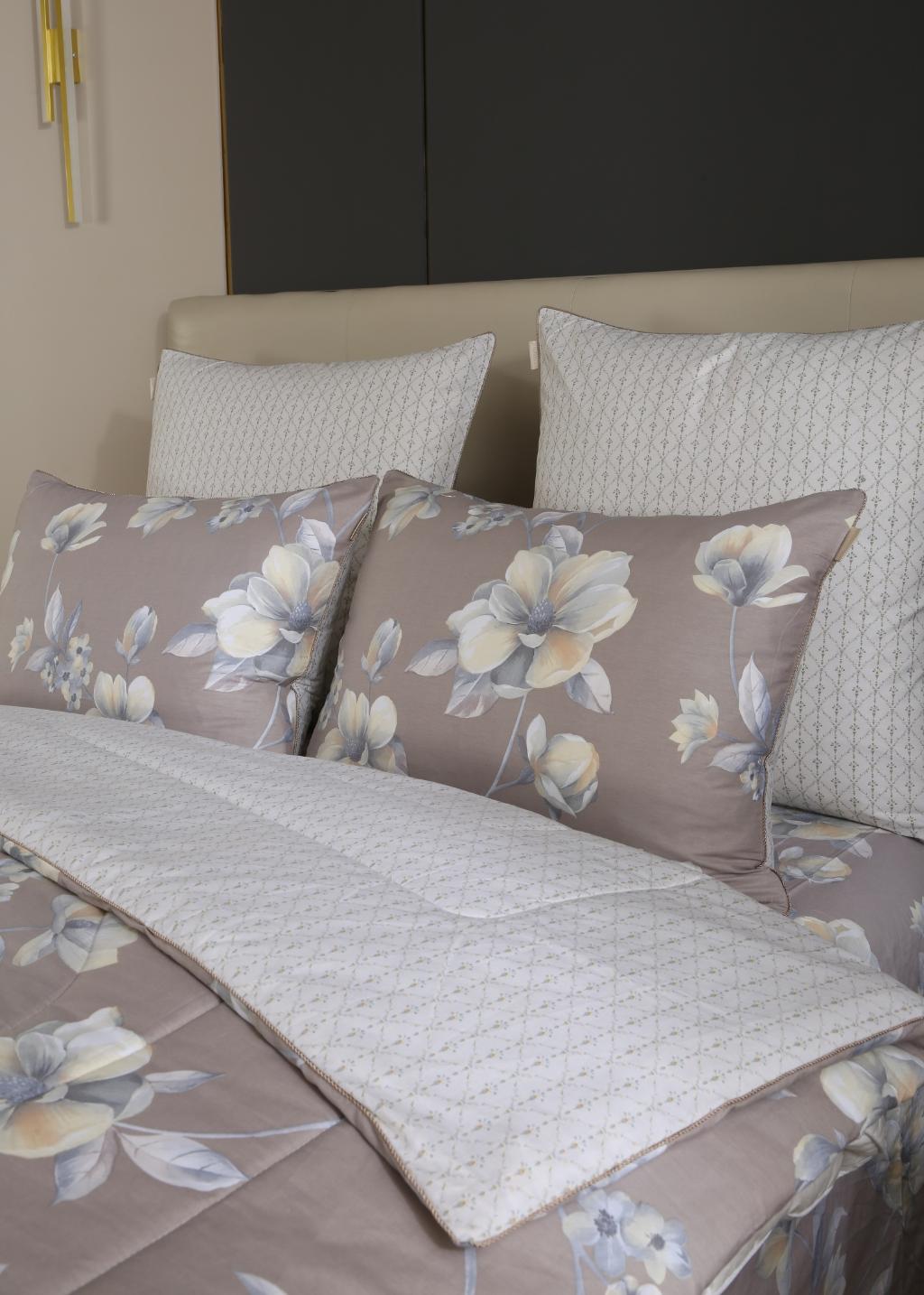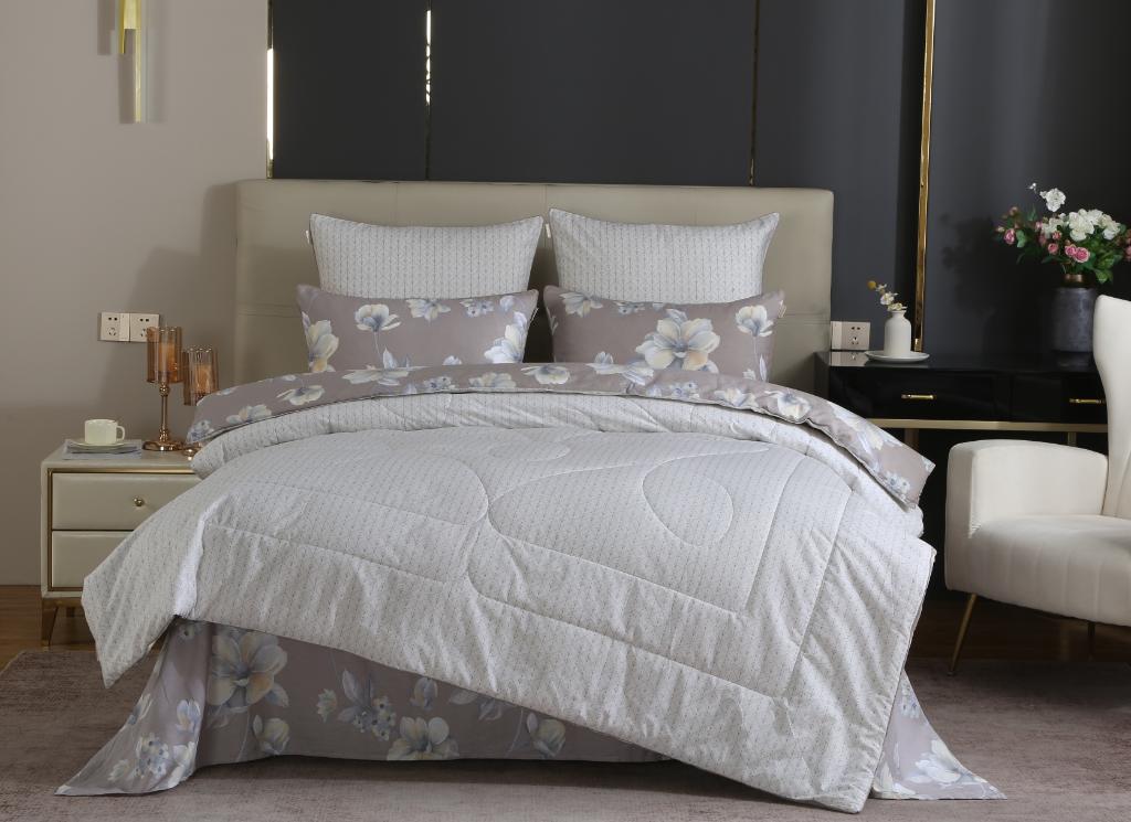 Всесезонная коллекция "Dolce Fiore Cotton" представляет собой комбинацию постельного белья и лёгкого двустороннего одеяла в чехле. В качестве наполнителя одеяла используется эковолокно-микрогель. Наволочки, простыня и чехол одеяла выполнены из сатина (100% хлопок). Изделие неприхотливо в уходе, легко стирается и быстро высыхает.