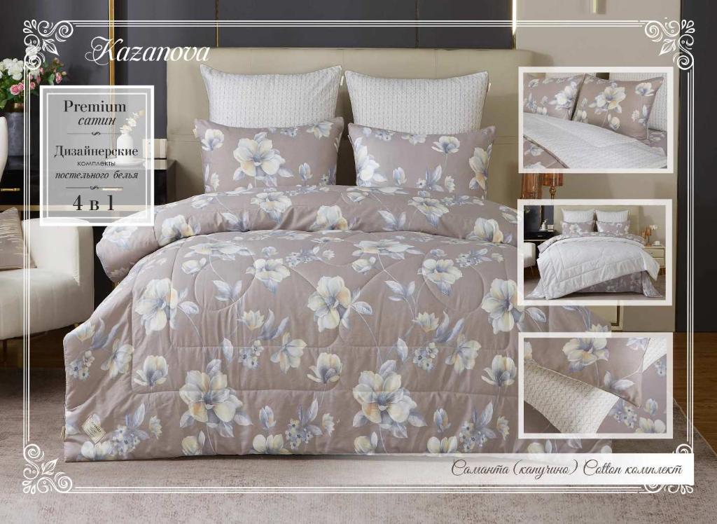 Постельное бельё с одеялом "Kazanov.A." Саманта (капучино) Сатин, Евро