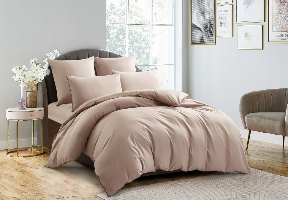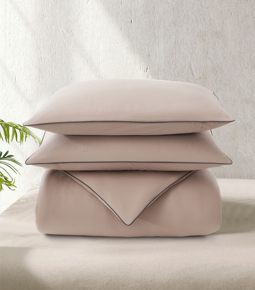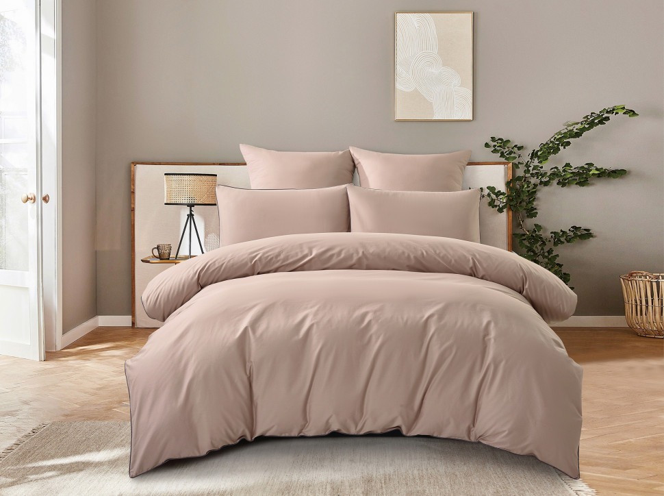 Постельное бельё "KARTEKS" сатин однотонный с кантом HK-03 (бежевый), 2 спальный