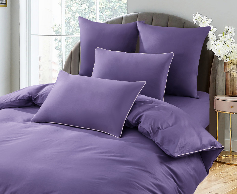 Постельное бельё "KARTEKS" сатин однотонный с кантом HK-05 (сиреневый), 2 спальный