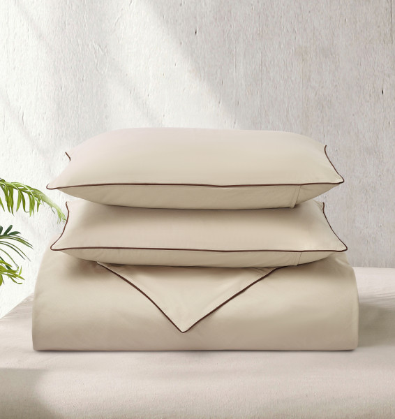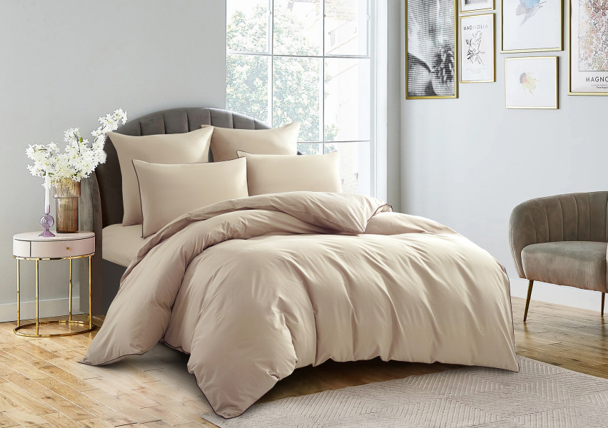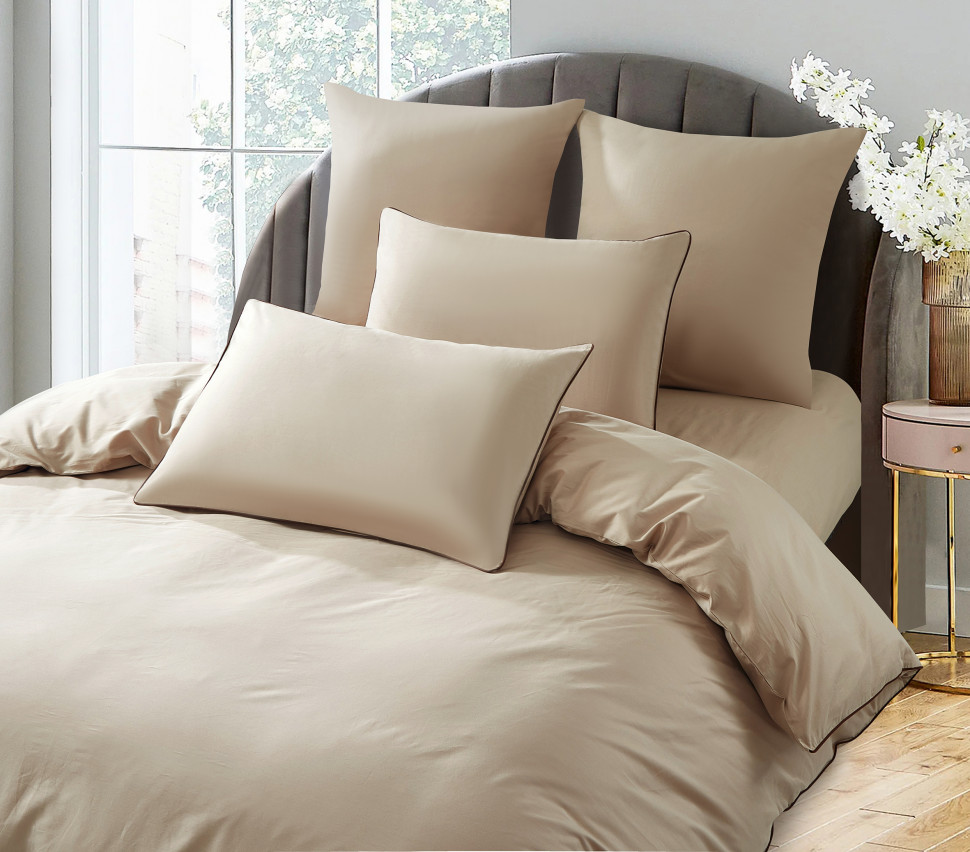 Постельное бельё "KARTEKS" сатин однотонный с кантом HK-02 (светло-бежевый), Евро