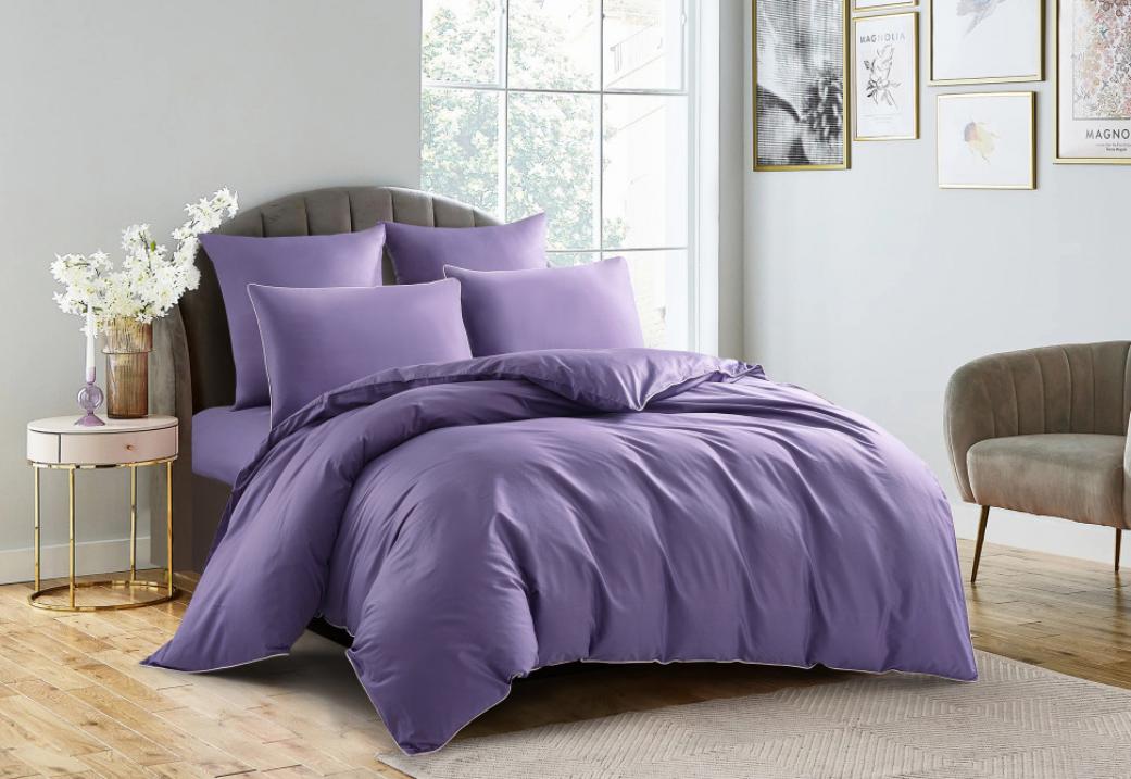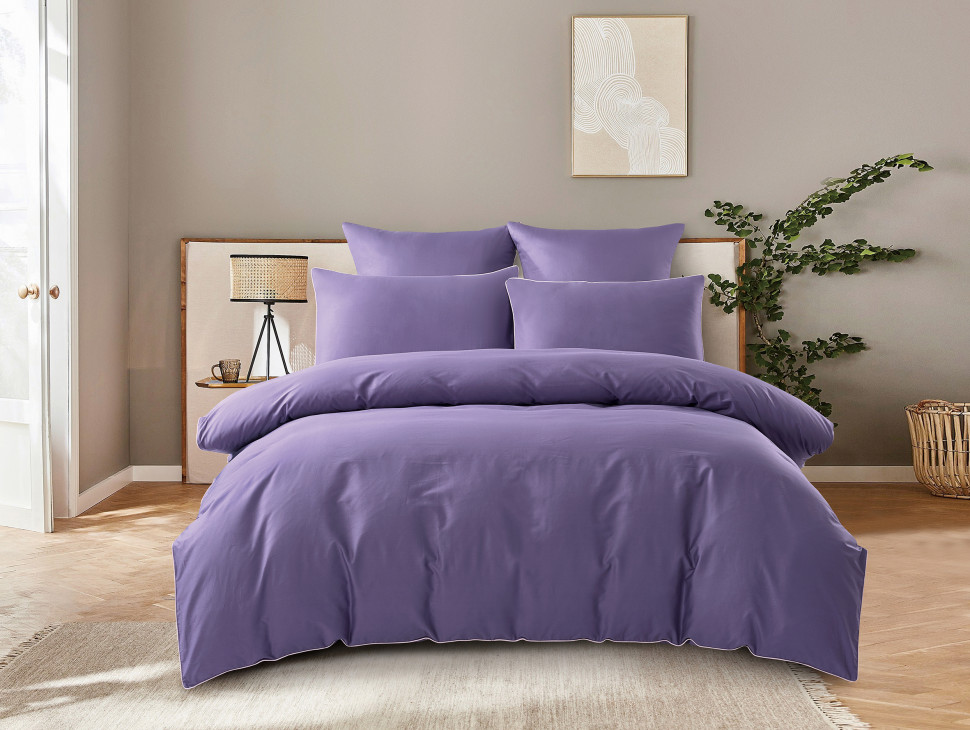 Постельное бельё "KARTEKS" сатин однотонный с кантом HK-05 (сиреневый), Евро