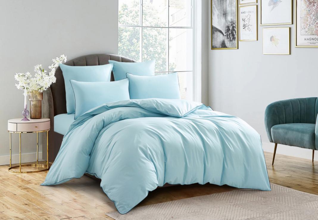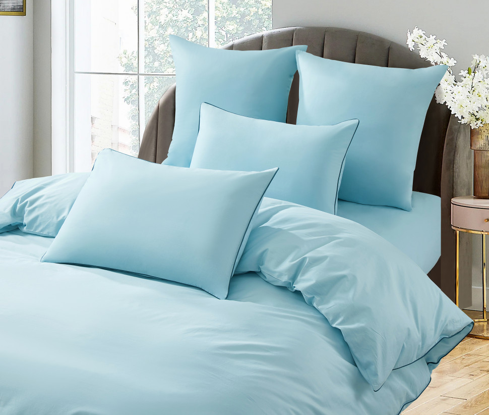 Постельное бельё "KARTEKS" сатин однотонный с кантом HK-06 (голубой), Евро