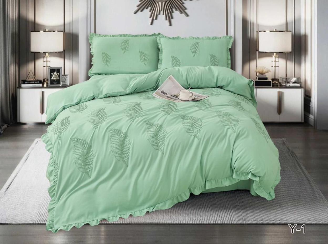 Постельное бельё c одеялом EFOR SATEN с вышивкой "ЛИСТОК" (ментоловый), Евро