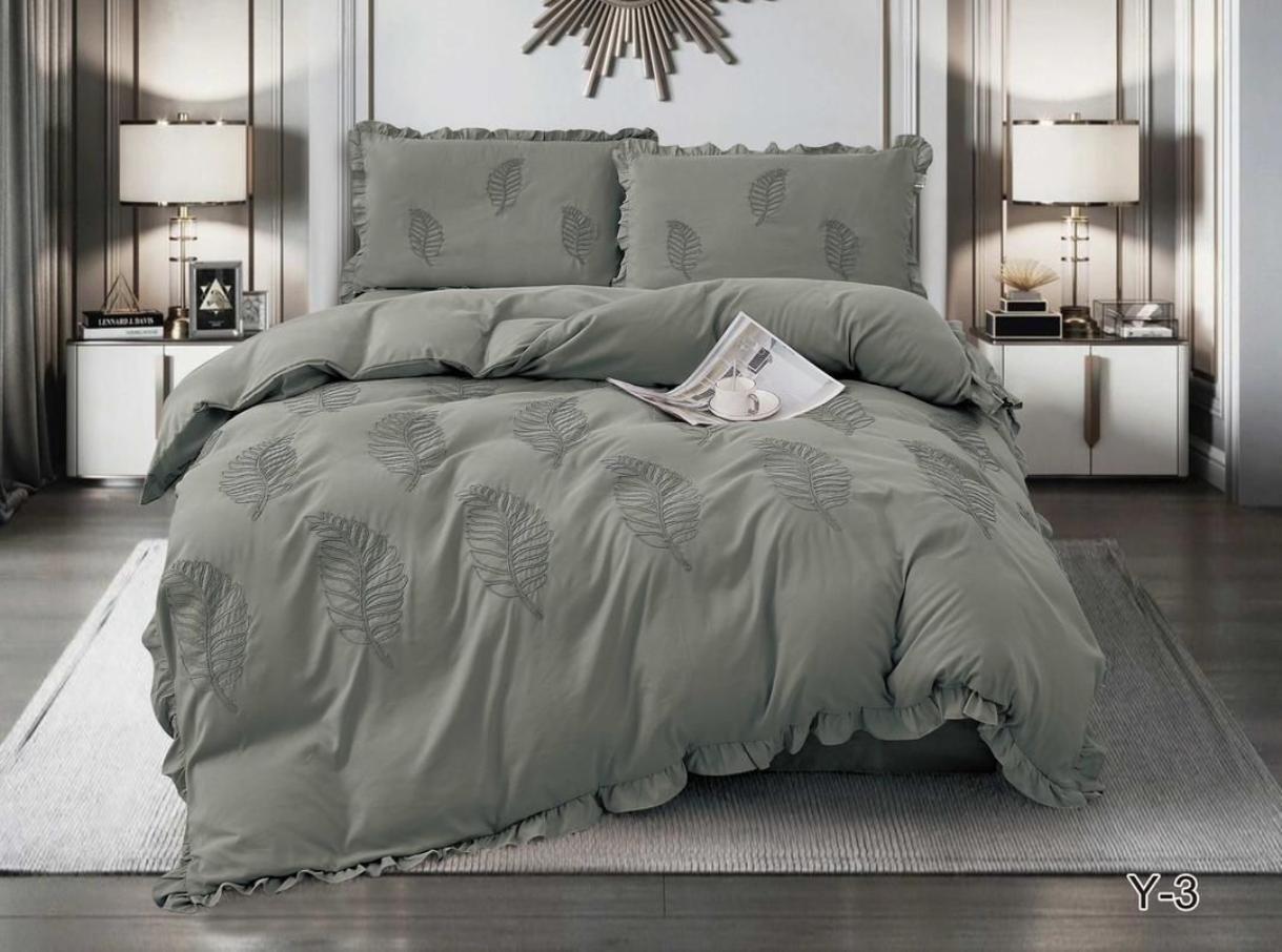 Постельное белье с одеялом EFOR "COTTONI" с вышивкой "ЛИСТОК" (серый), Евро