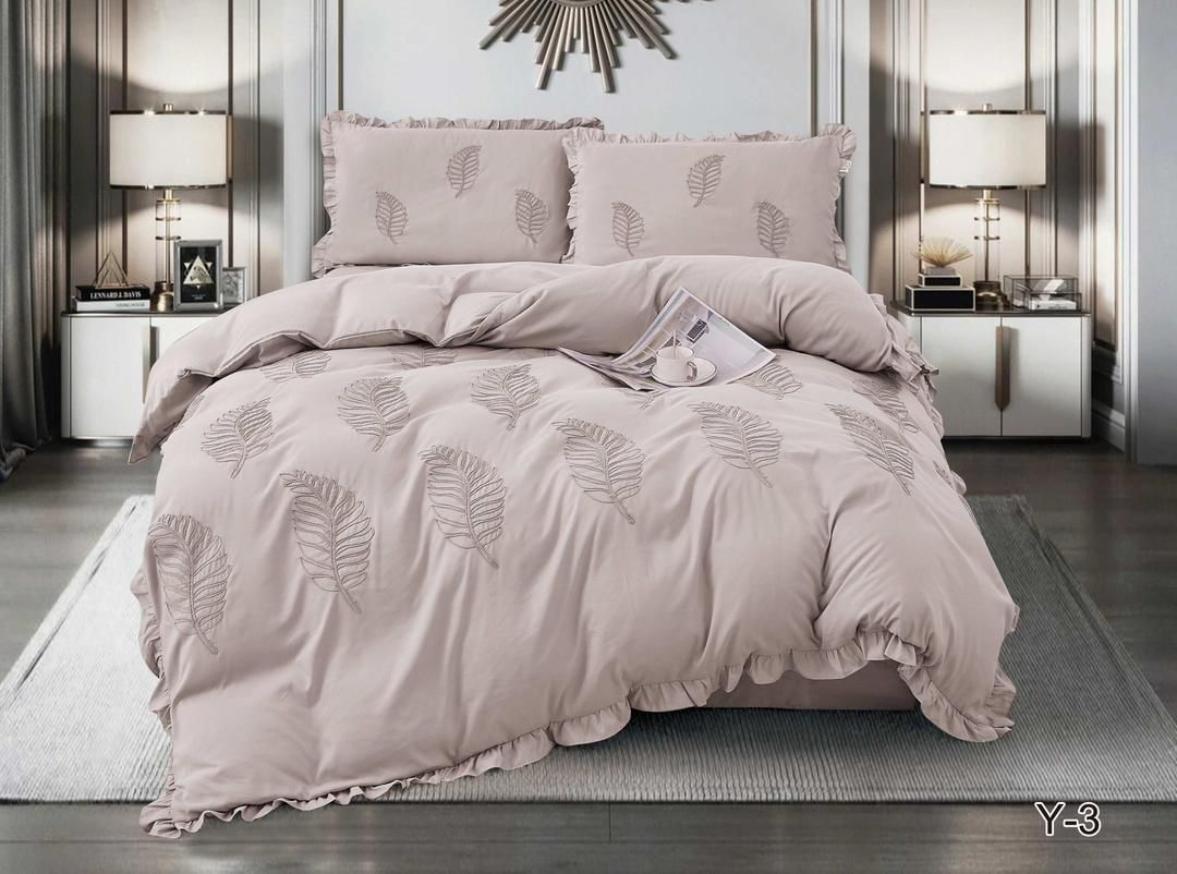 Постельное белье с одеялом EFOR "COTTONI" с вышивкой "ЛИСТОК" (сиреневый), Евро