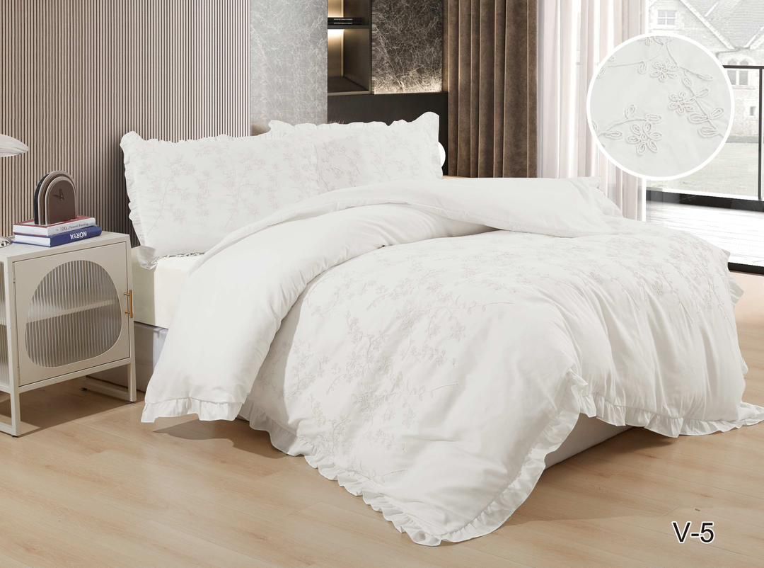 Постельное белье с одеялом EFOR "COTTONI" с вышивкой "ЦВЕТЫ" (белый), Евро