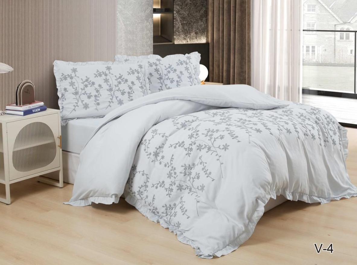 Постельное бельё c одеялом EFOR SATEN с вышивкой "ЦВЕТЫ" (светло-серый), Евро