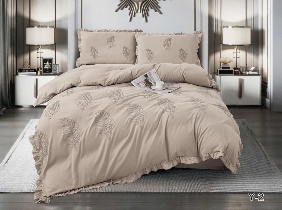Постельное белье EFOR "COTTONI Y-2" с вышивкой "листок", Евро