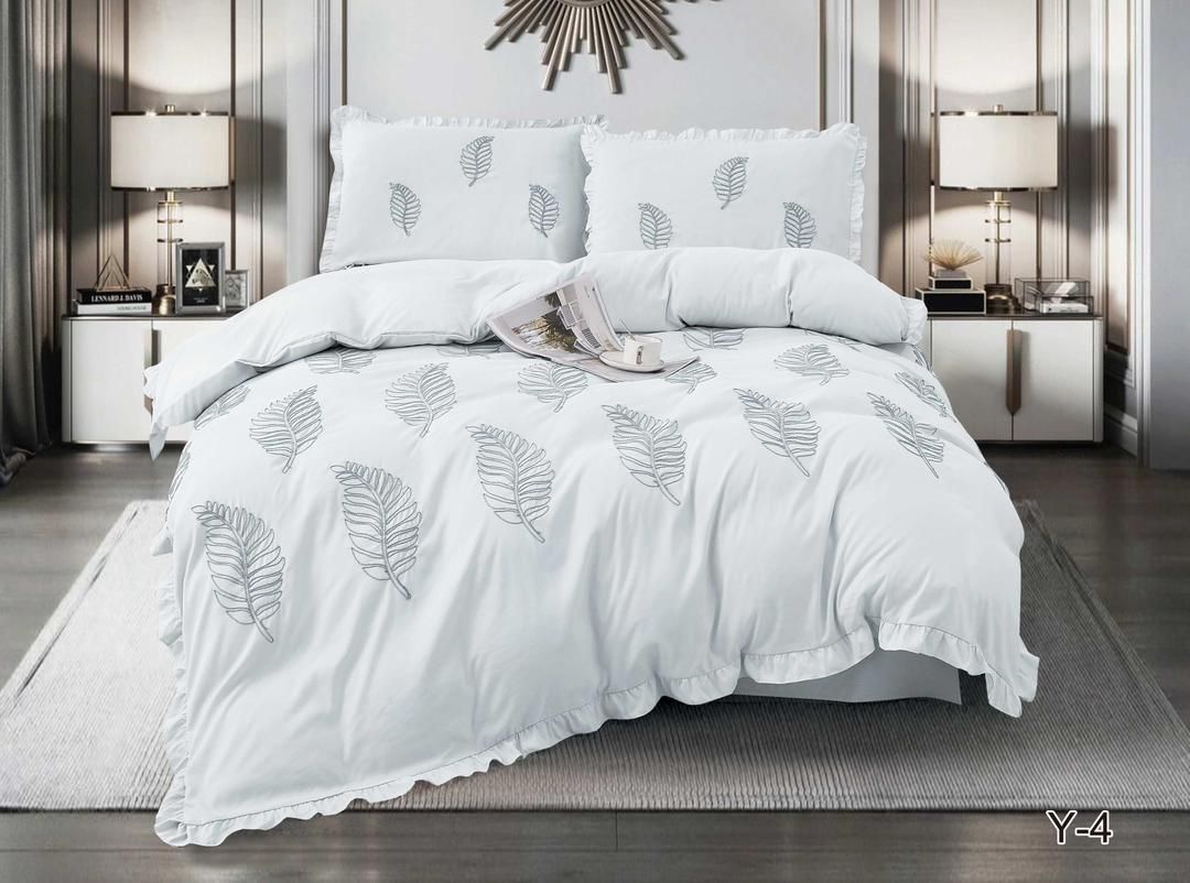Постельное белье EFOR "COTTONI Y-4" с вышивкой "листок", Евро
