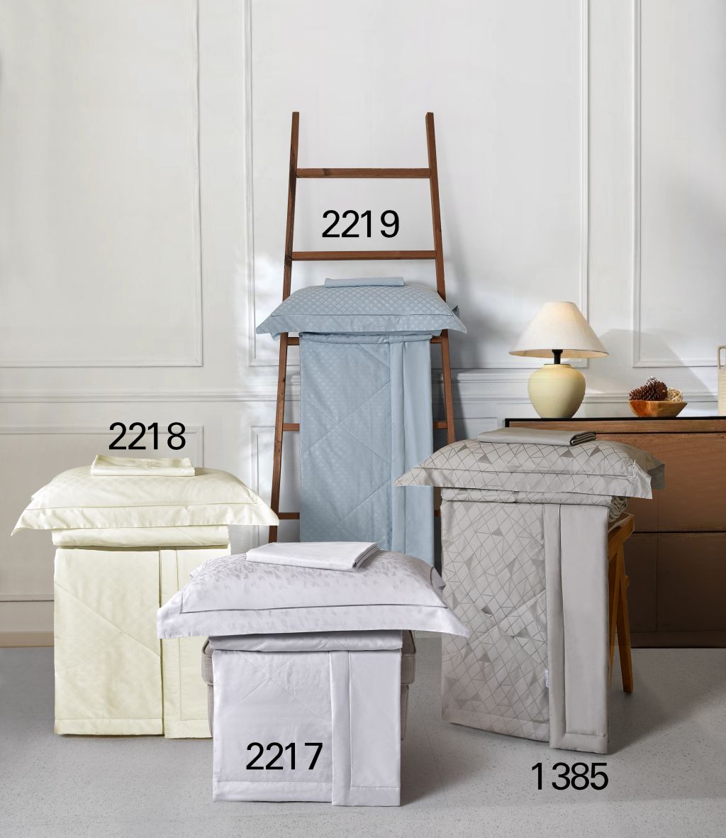 Постельное бельё данной серии с лёгким одеялом и наволочками с клапаном изготовлено из 100% хлопка. Верх одеяла и наволочек выполнены из жаккарда, а простыня, внутренняя сторона пододеяльника и наволочек из люкс-сатина. Жаккардовая ткань отличается не только изысканным внешним видом, но и высокой плотностью, прочностью и долговечностью. Вместо стандартного пододеяльника в комплектах этой серии используется лёгкое одеяло в чехле из хлопкового сатина с наполнителем из тенсела и искусственного шёлка.