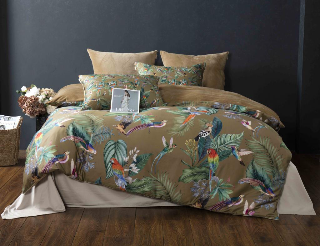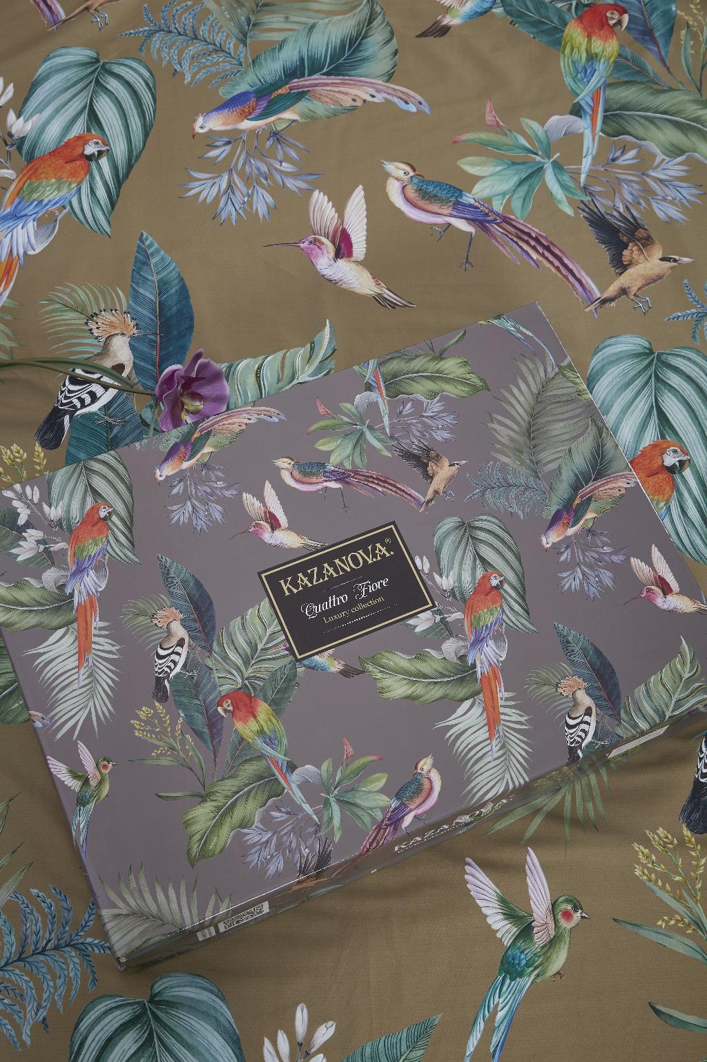 Постельное белье "Kazanov.A." Колибри Каллиопа (олива золото) Велюр/Egypt Cotton, Евро