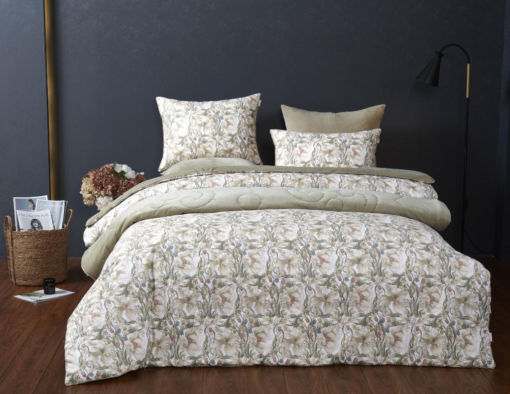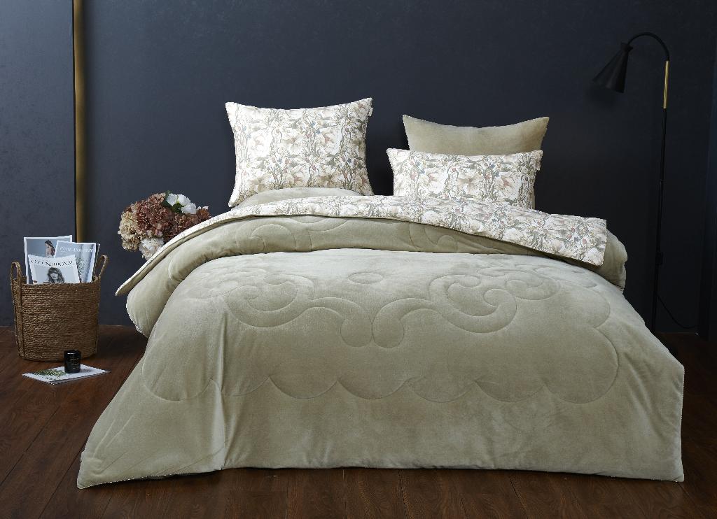 Постельное белье с одеялом "Kazanov.A." Верде (олива жемчуг) Велюр/Egypt Cotton, Евро