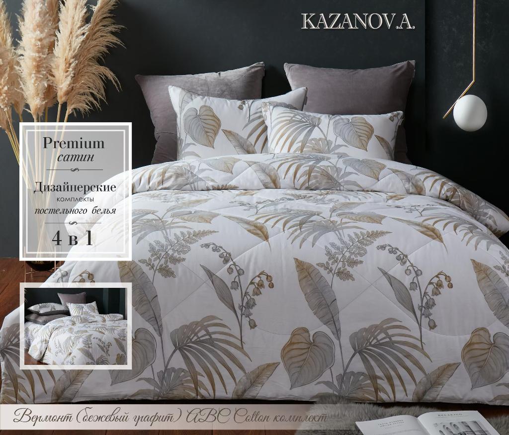 Постельное белье с одеялом "Kazanov.A." Вермонт (бежевый графит) Велюр/Egypt Cotton, Евро