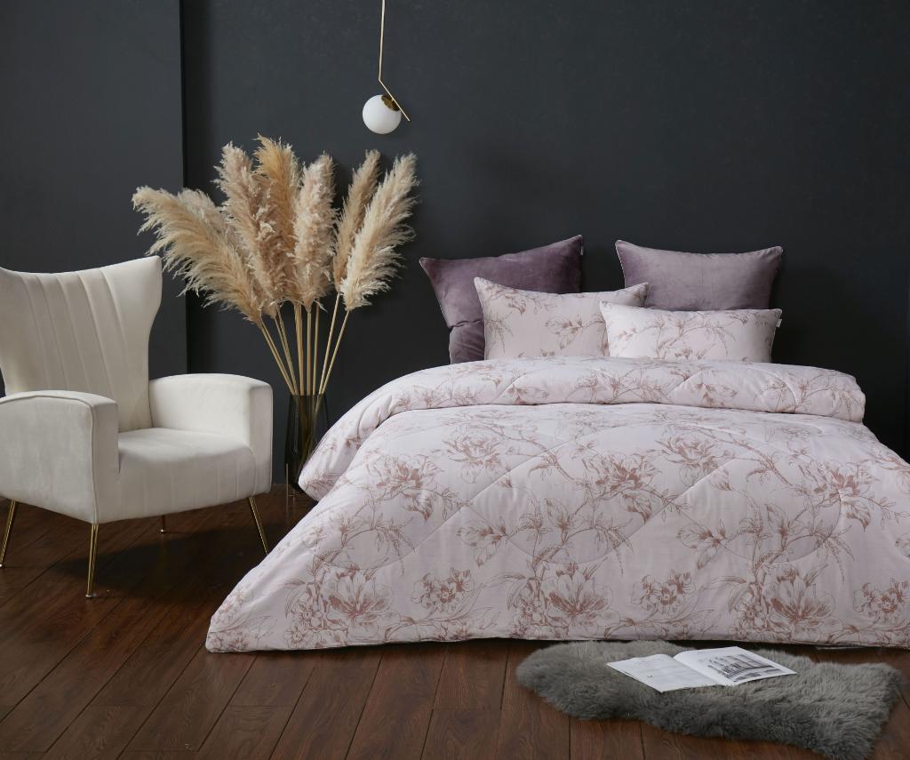 Коллекция ABC "Dolce Fiore" представляет собой комбинацию постельного белья и лёгкого одеяла в чехле. В качестве наполнителя одеяла используется эковолокно-микрогель.