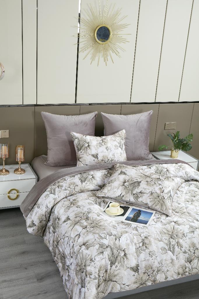 Постельное белье с одеялом "Kazanov.A." Хиллари (капучино) Велюр/Egypt Cotton, Семейный