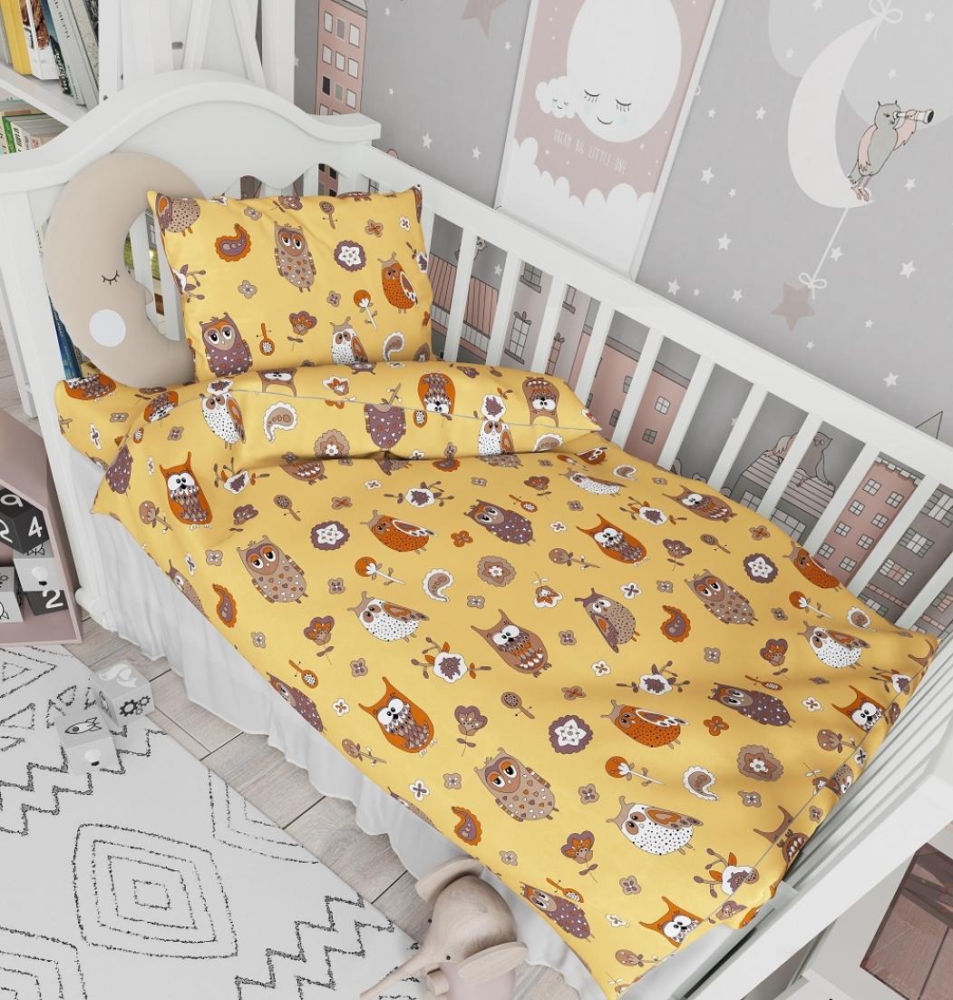 Постельное белье "Valtery" "Совята желтые" Поплин, Детский