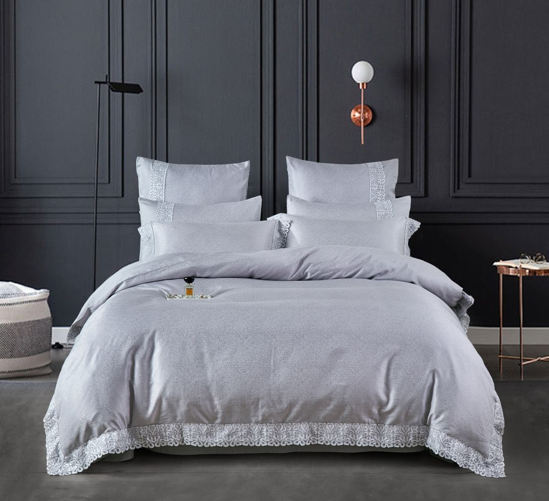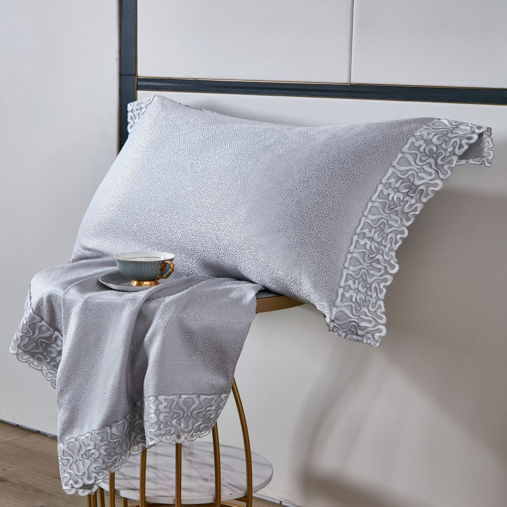 Постельное бельё данной серии с пододеяльником на молнии и наволочками с клапаном изготовлено из 100% хлопка. Верх пододеяльника и наволочек выполнены из жаккарда, а простыня, внутренняя сторона пододеяльника и наволочек из люкс-сатина. Жаккардовая ткань отличается не только изысканным внешним видом, но и высокой плотностью, прочностью и долговечностью.