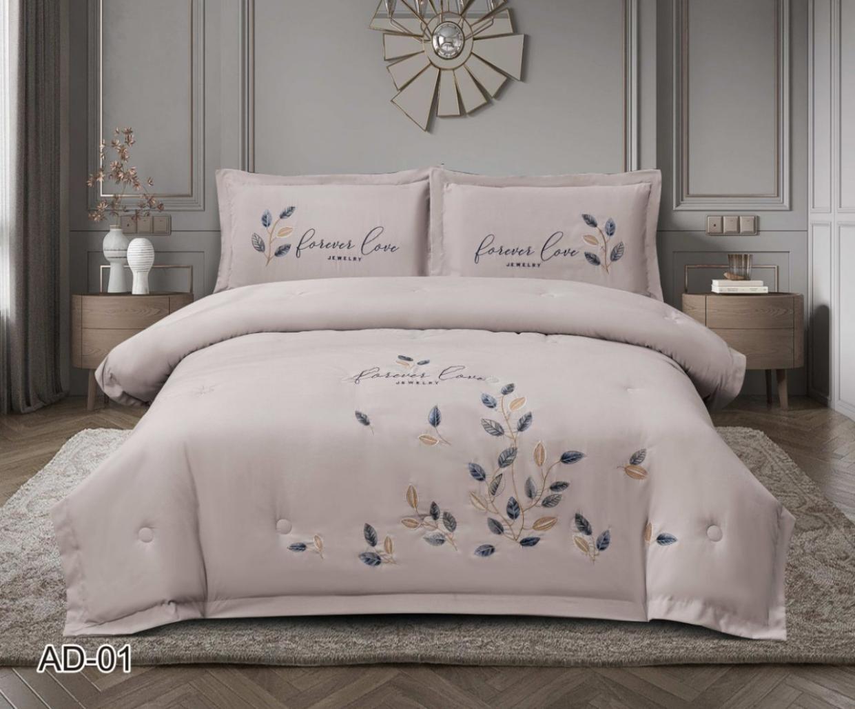 Постельное бельё с одеялом EFOR COTTONI с вышивкой "листья на ветке" (сиреневый), Евро