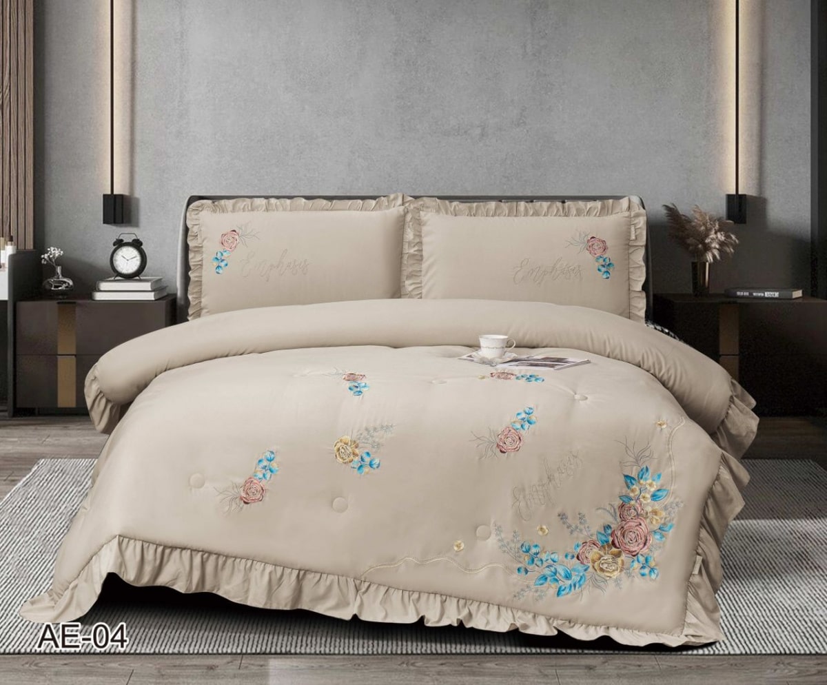 Постельное бельё с одеялом EFOR COTTONI с вышивкой "цветная роза" (капучино), Евро