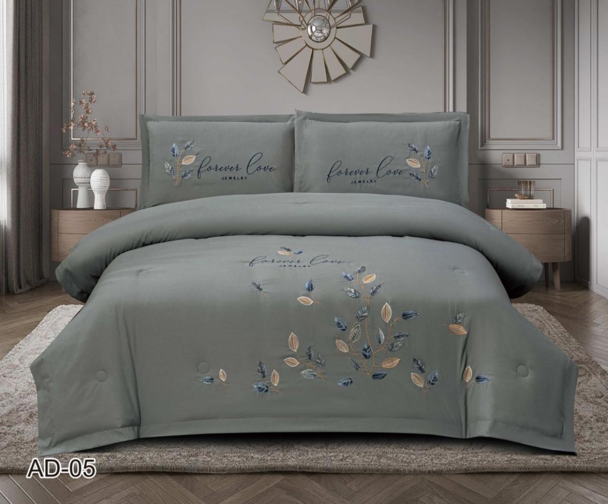 Постельное бельё EFOR COTTONI с вышивкой "листья на ветке" серый, Евро