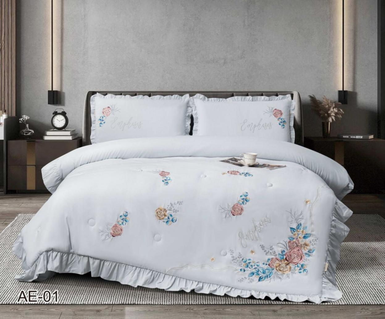 Постельное бельё EFOR COTTONI с вышивкой "цветная роза" светло-серый, Евро