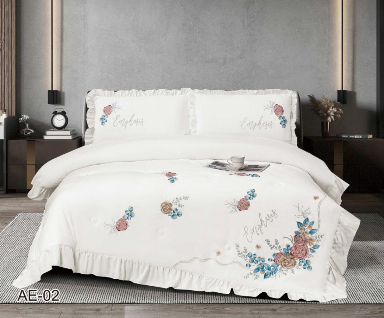 Постельное бельё EFOR COTTONI с вышивкой "цветная роза" белый, Евро