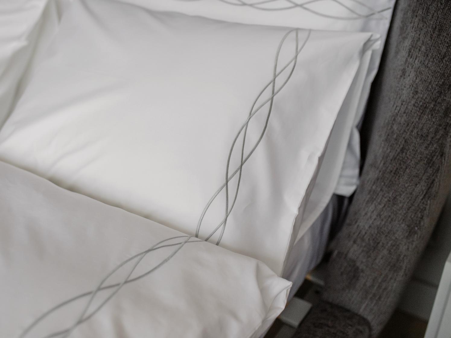 Наволочки и пододеяльник декорированы вышивкой из вискозной нити.