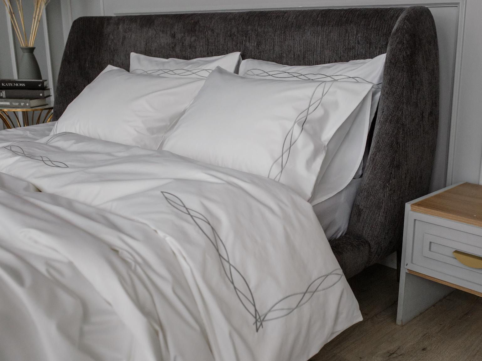 Отзывы о Постельное бельё "ES House" ELLE WAVE (белый/серый) Сатин ДеЛюкс