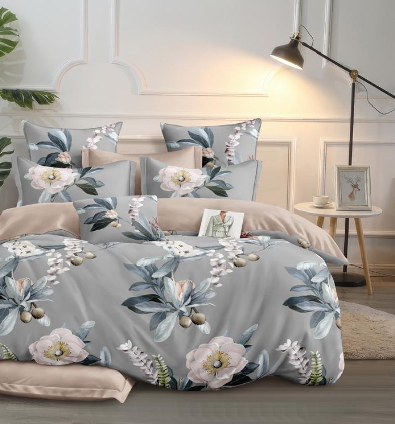 Комплекты выполнены из основной ткани - наружная поверхность пододеяльника и наволочек, и ткани компаньона - простыня, обратная сторона пододеяльника и наволочек.