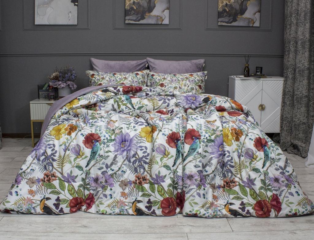 Постельное белье с одеялом "Kazanov.A." Маки (жемчуг лаванда) Велюр/Egypt Cotton, Евро