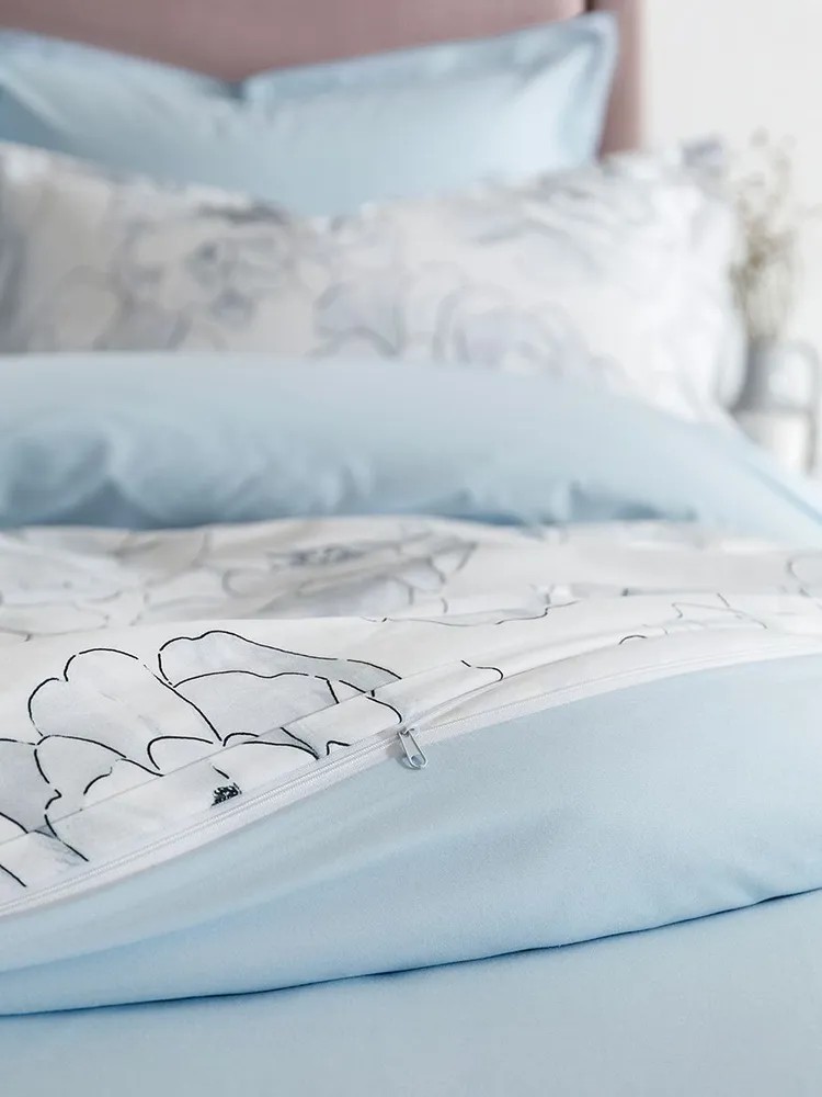 Комплекты коллекции BR выполнены с наволочками с запахом и пододеяльником на молнии.