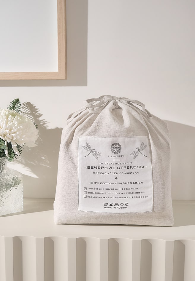 Постельное бельё Luxberry "ВЕЧЕРНИЕ СТРЕКОЗЫ" перкаль/лён, 1,5 спальный