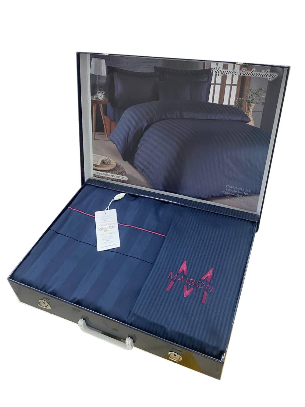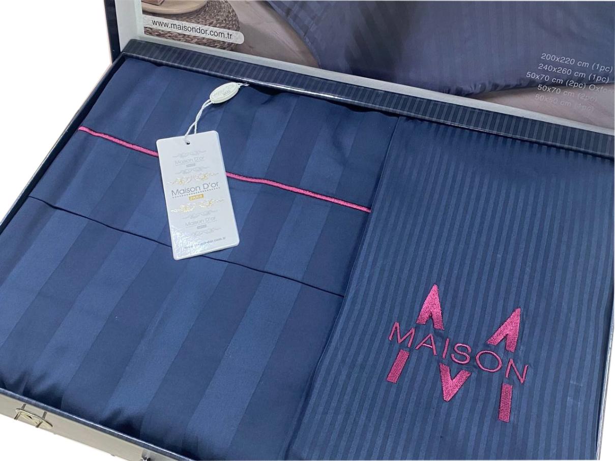Постельное бельё "Maison D'or" ELEGANCE Страйп-сатин Евро, антрацит/бордо