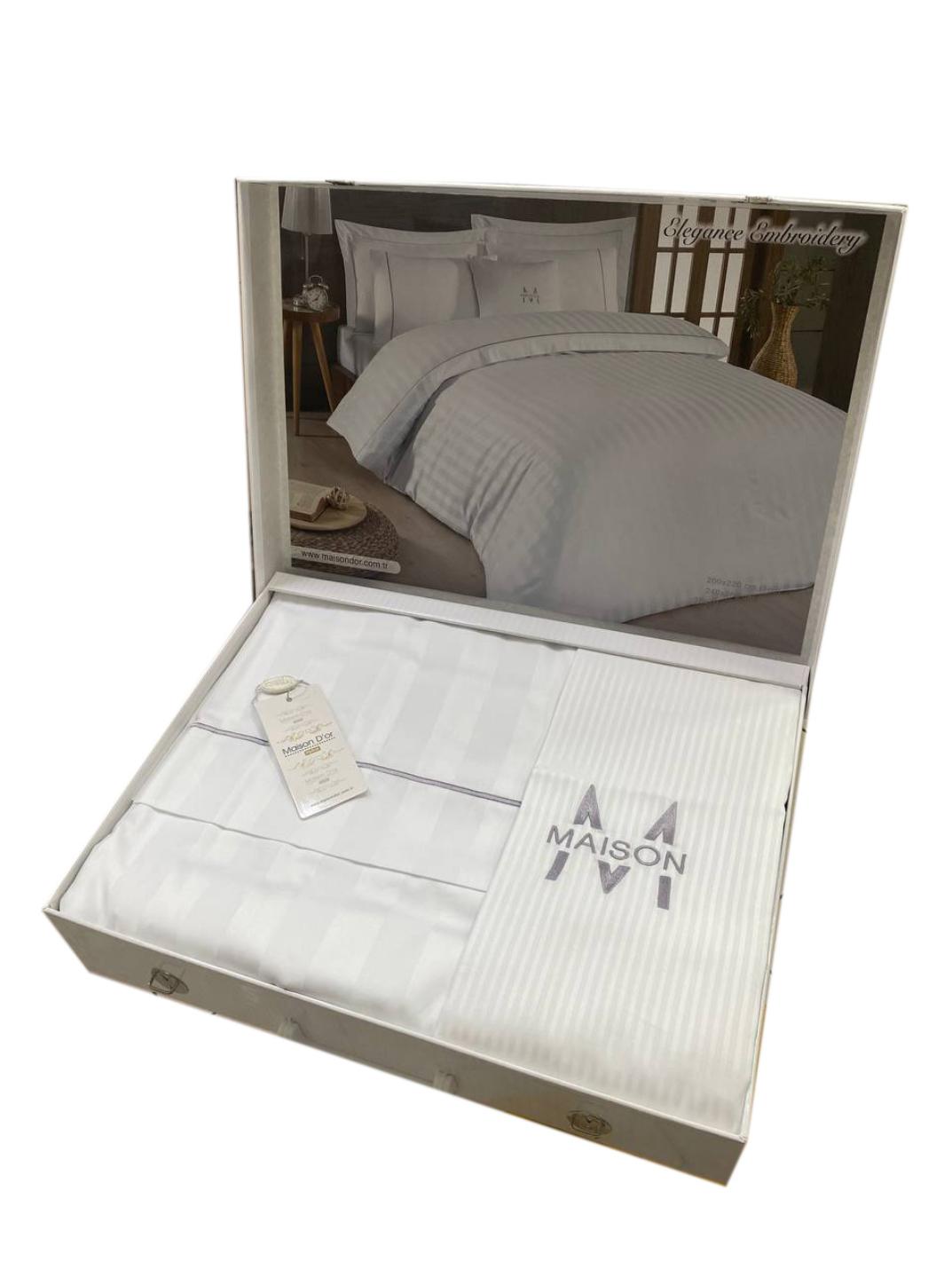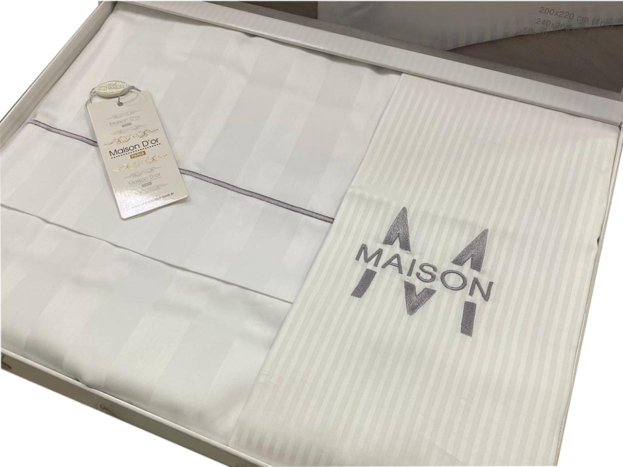 Постельное бельё "Maison D'or" ELEGANCE Страйп-сатин Евро, бежевый/серый