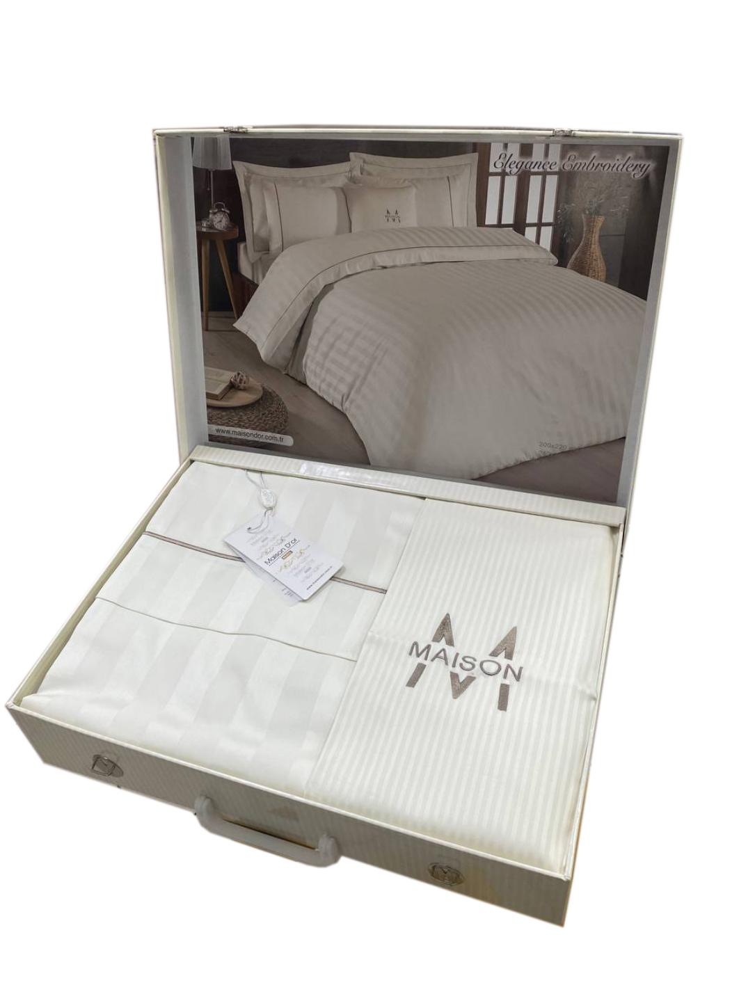 Постельное бельё "Maison D'or" ELEGANCE Страйп-сатин Евро, кремовый/бежевый