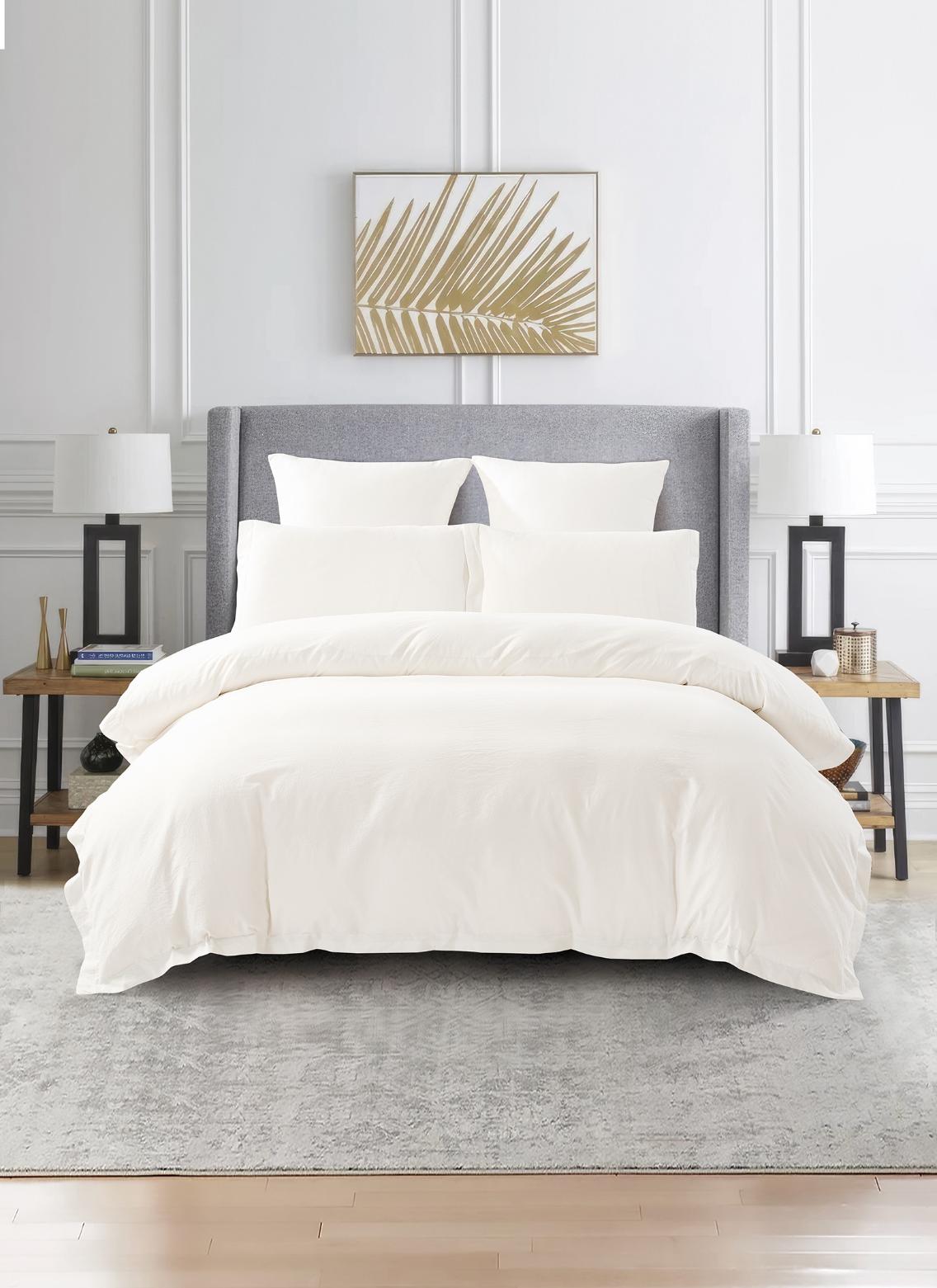 Постельное бельё серии VTJ торговой марки "Karteks", выполненное из "варёного хлопка", отличается лёгким жатым эффектом, повышенной плотностью, износостойкостью, воздухопроницаемостью, выдерживает многочисленные стирки.