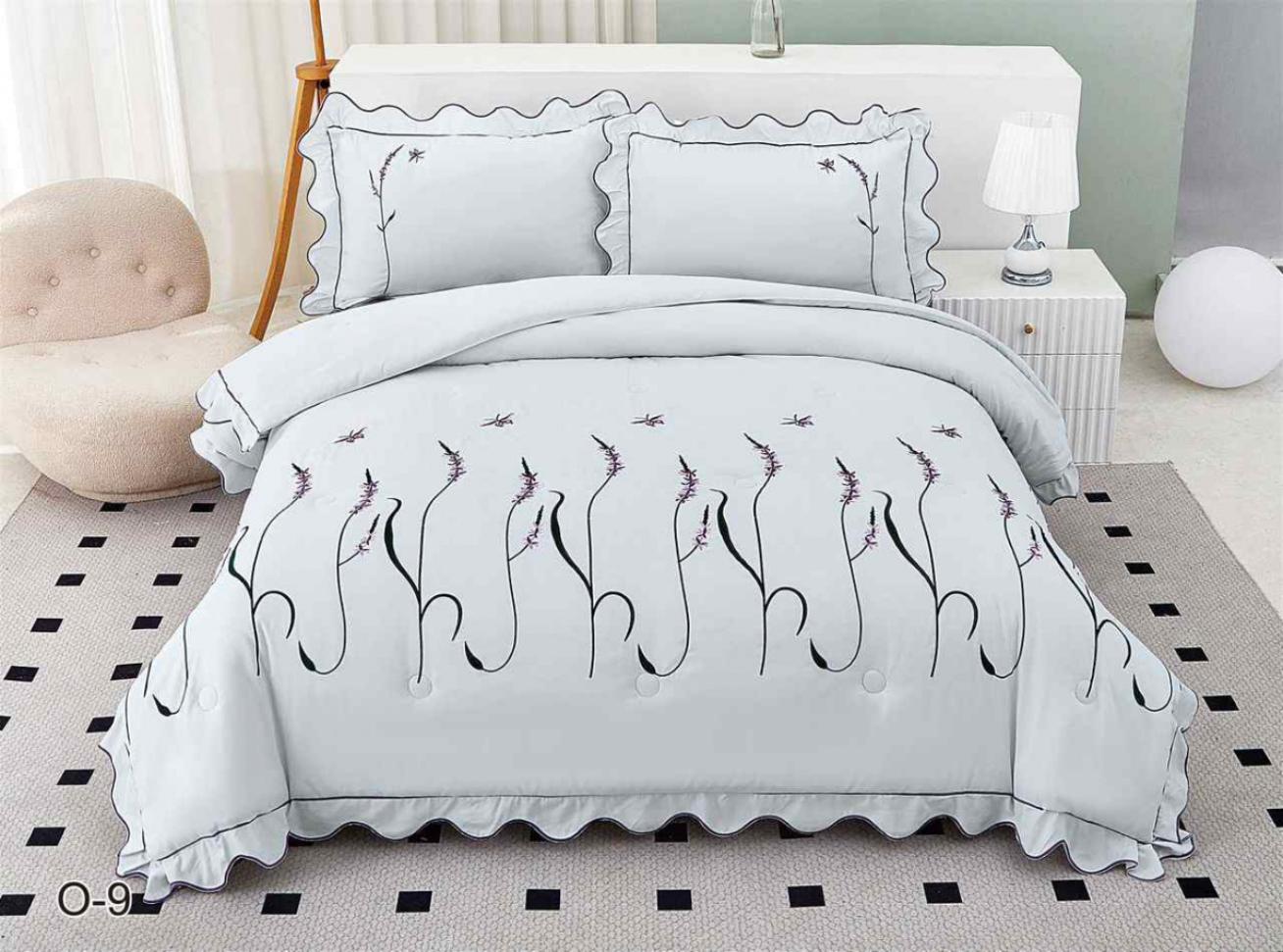 Постельное белье EFOR "COTTONI" с вышивкой "стебель" светло-голубой, Евро