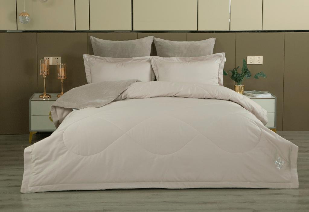 Постельное белье с одеялом "Kazanov.A." Lindor Fluffy (платина бежевый) Велюр/Egypt Cotton, Семейный