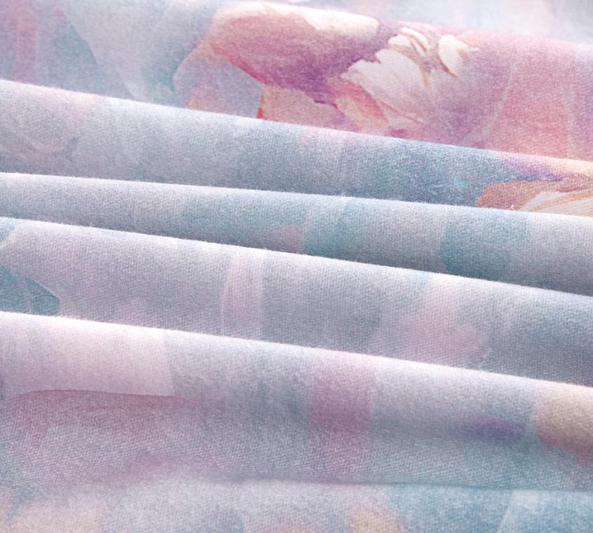 Постельное бельё серии "Акварель" выполнено в пастельных тонах из смеси волокон хлопка и вискозы. Такое бельё обладает отличными антибактериальными и гипоаллергенными свойствами, хорошо «дышит», а плотное переплетение волокон препятствует загрязнению.