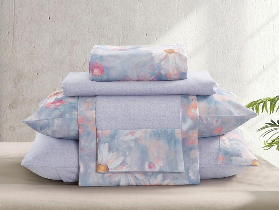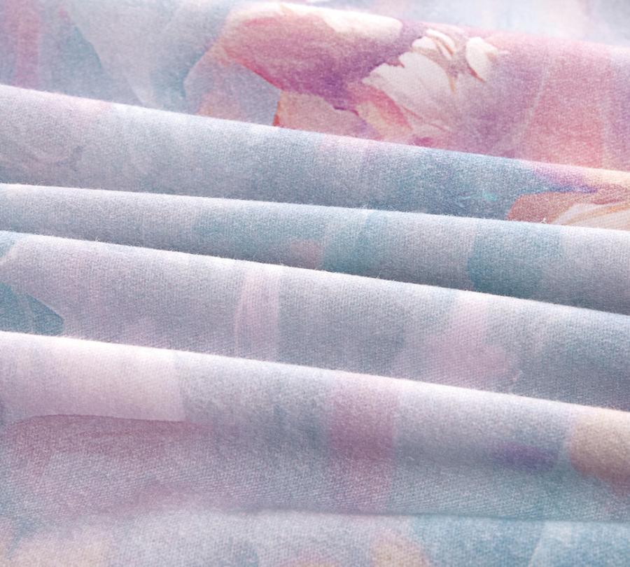 Постельное бельё серии "Акварель" выполнено в пастельных тонах из смеси волокон хлопка и вискозы. Такое бельё обладает отличными антибактериальными и гипоаллергенными свойствами, хорошо «дышит», а плотное переплетение волокон препятствует загрязнению.