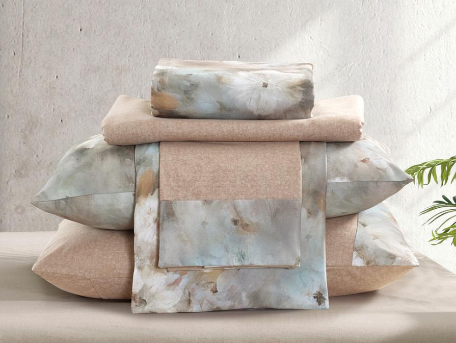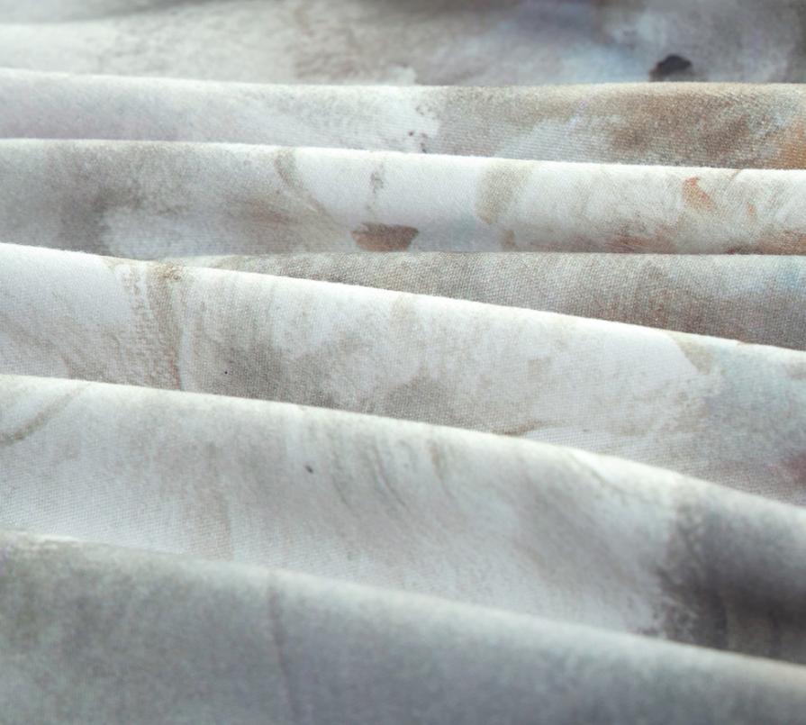 Постельное бельё серии "Акварель" выполнено в пастельных тонах из смеси волокон хлопка и вискозы. Такое бельё обладает отличными антибактериальными и гипоаллергенными свойствами, хорошо «дышит», а плотное переплетение волокон препятствует загрязнению.