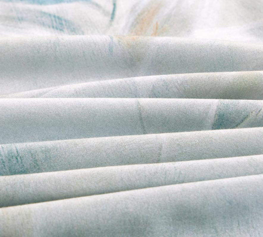 Постельное бельё серии "Акварель" выполнено в пастельных тонах из смеси волокон хлопка и вискозы. Такое бельё обладает отличными антибактериальными и гипоаллергенными свойствами, хорошо «дышит», а плотное переплетение волокон препятствует загрязнению.