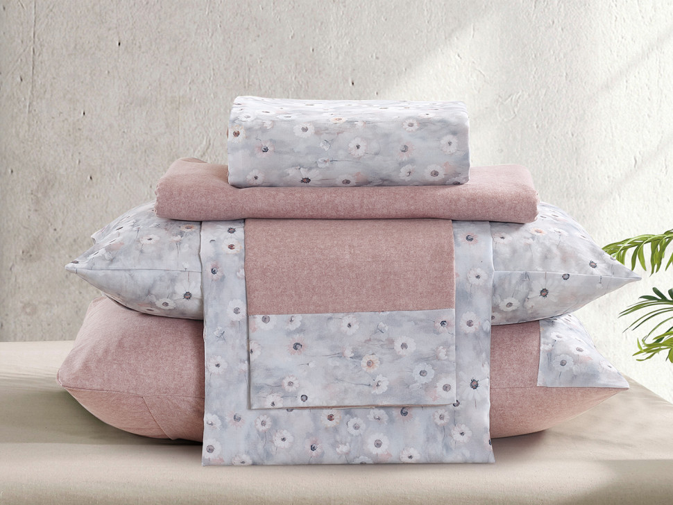 Постельное бельё серии "Акварель" выполнено в пастельных тонах из смеси волокон хлопка и вискозы. Такое бельё обладает отличными антибактериальными и гипоаллергенными свойствами, хорошо «дышит», а плотное переплетение волокон препятствует загрязнению.