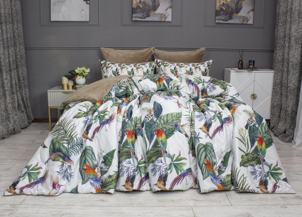 Постельное белье с одеялом "Kazanov.A." Колибри Каллиопа (бежевый жемчуг) Велюр/Egypt Cotton, Семейный