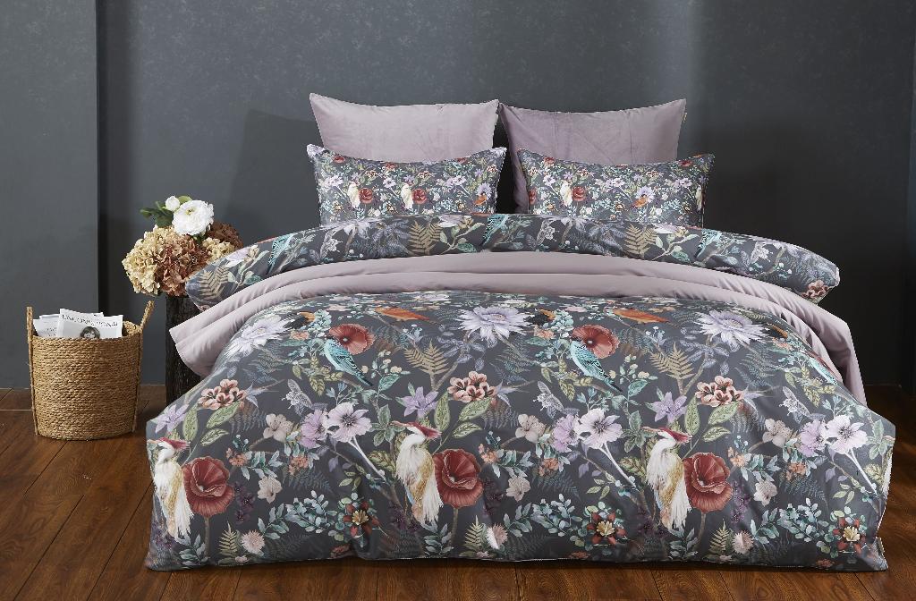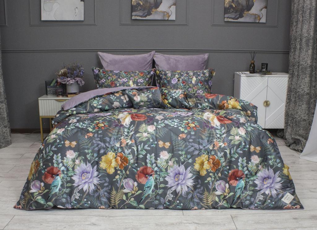 Постельное белье с одеялом "Kazanov.A." Маки (графит лаванда) Велюр/Egypt Cotton, Семейный