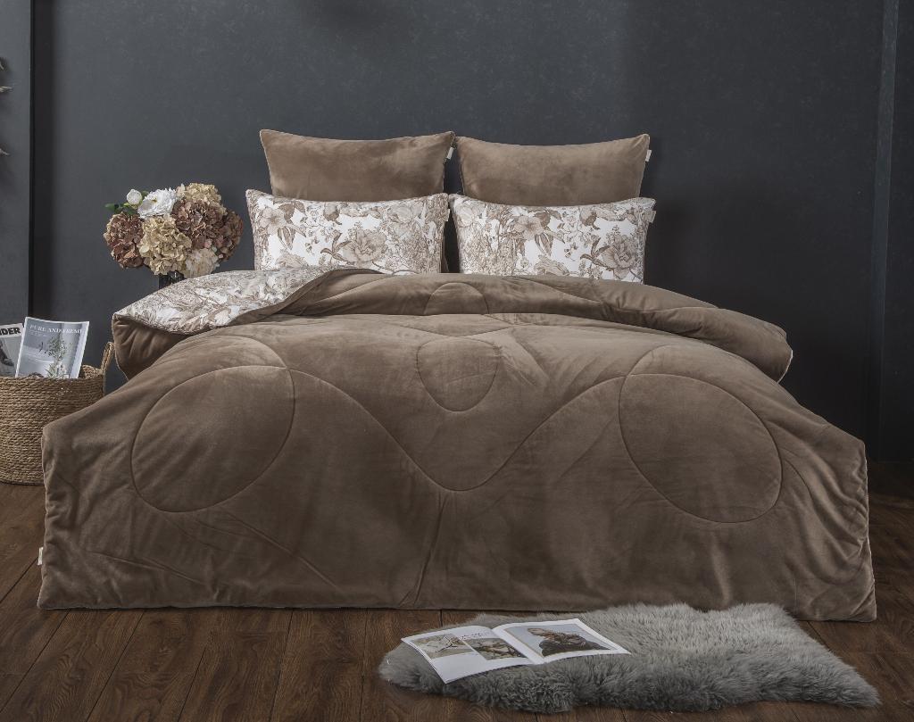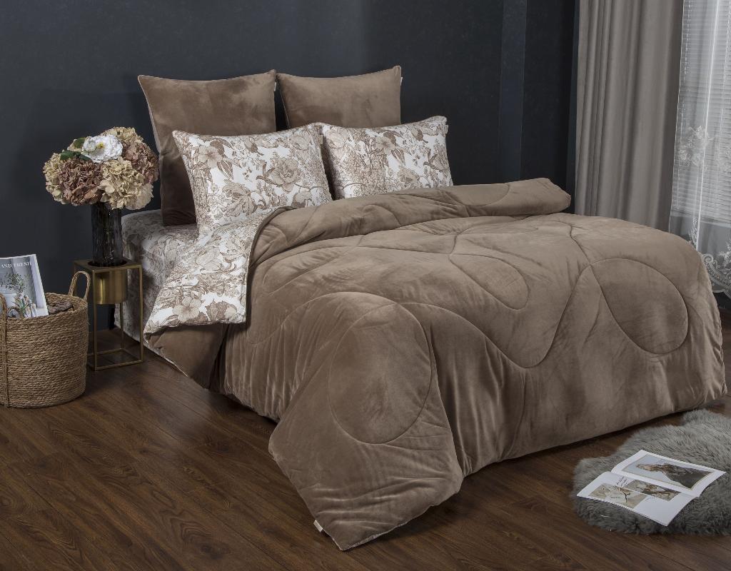 Постельное белье с одеялом "Kazanov.A." Голди (бежевый пудра) Велюр/Egypt Cotton, Евро