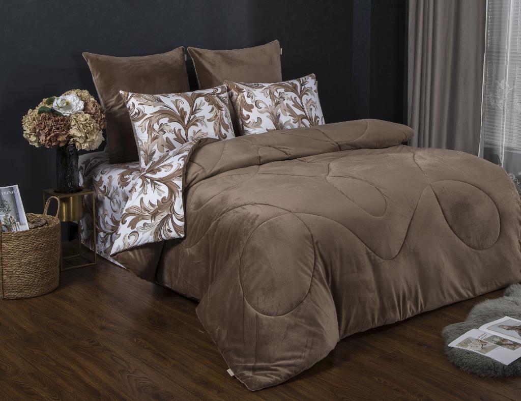 Постельное белье с одеялом "Kazanov.A." Медисон (капучино бежевый) Велюр/Egypt Cotton, Евро